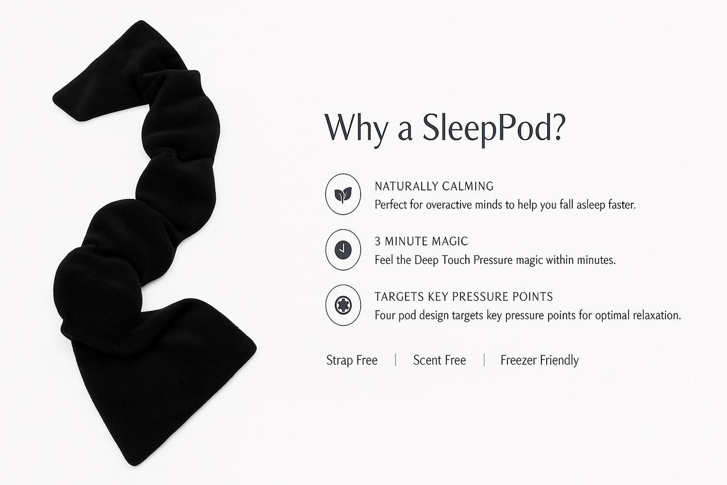 The purpose of SleepPod is to help you relax and get to sleep, not to stay on all night. SleepPod may slip off while you're sound asleep but will always be by your side if you get to snooze-in.